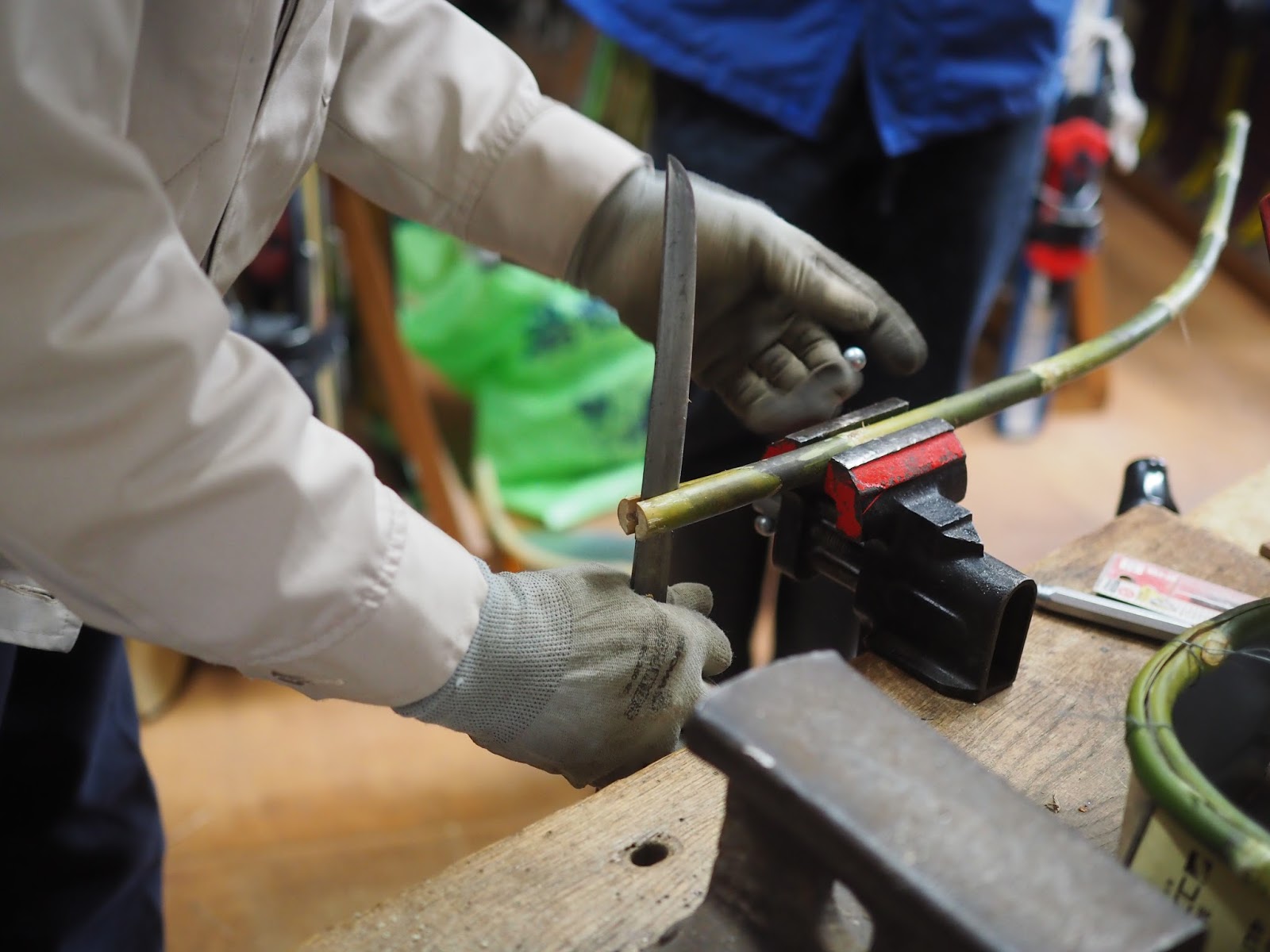 ところが最近はもうこれを作れる人がいなくなってきました。廃材に息を吹き込みよみがえらせるこのすばらしい技を是非体験してみたくなり、今回は5人が青木さんに弟子入り(?)しました。